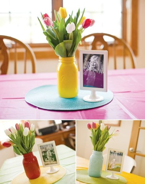 utilizando potes de maionese, como porta-retratos estilizados (que podem